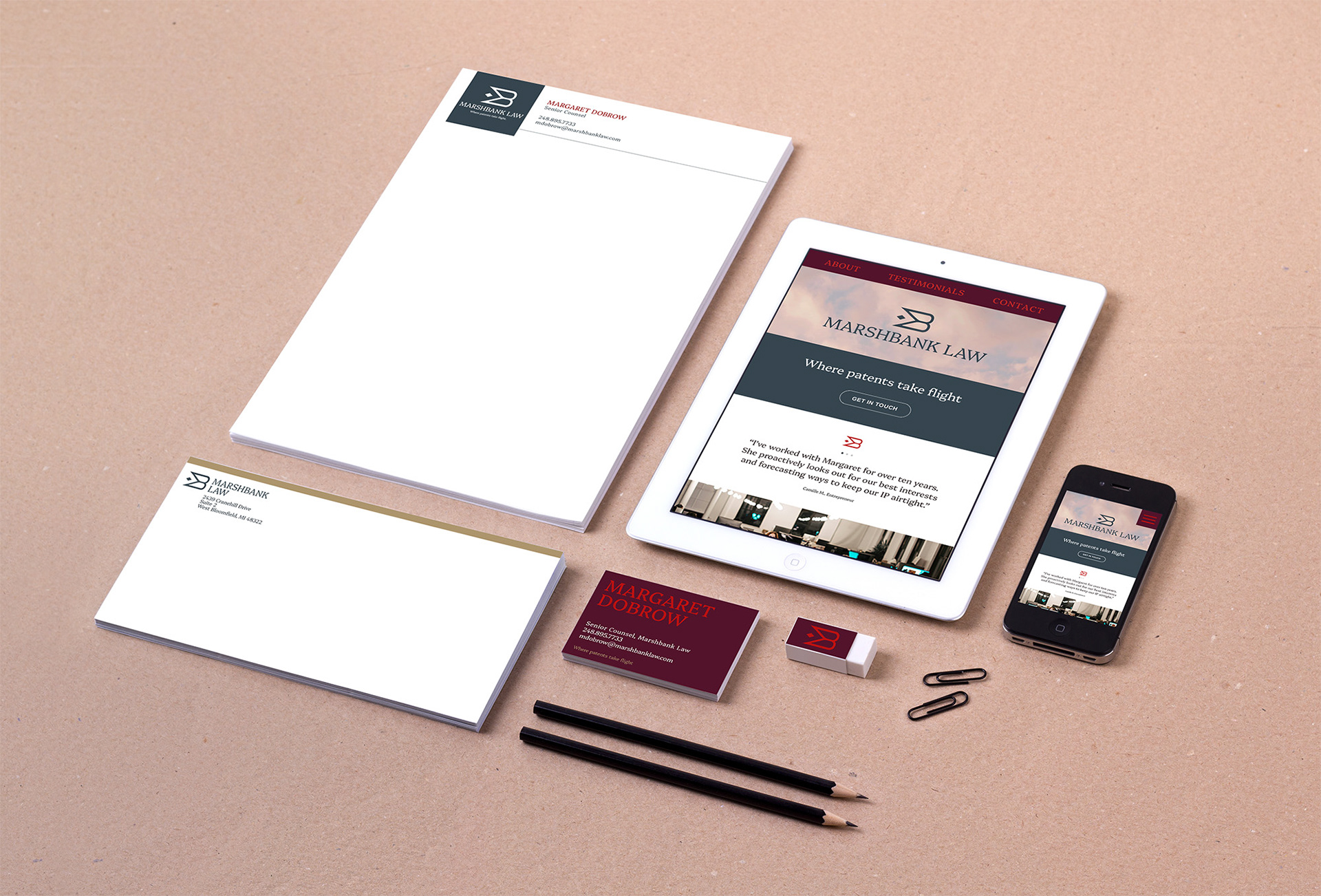 The challenge: Margaret was in need of a refreshed look, tone, and feel for her IP law firm. An expert in her niche field with a roster of unwavering clients, she wanted Marshbank Law to feel as distinctive and fearless as her work.